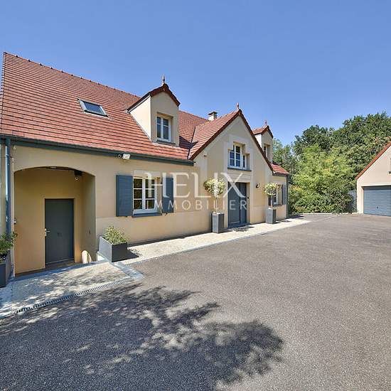Maison d'exception 240 M² environ rénovée à neuf, au calme absolu, à proximité immédiate de Saint-Germain-en-Laye, du Lycée International et des axes A13/A14. Superbes volumes avec un séjour de plus de 90 M² et une cuisine américaine contemporaine, entièrement équipée avec de l'électroménagers connectés de dernière génération, une buanderie avec un lave-linge et un sèche-linge, 4 chambres, 2 salles de douches et une salle de bains, pensées avec des matériaux de qualité. Deux jardins clos sans vis-à-vis, vue forêt et chevaux, un cadre de vie ...