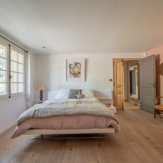 15 minutes from Aix-en-Provence. Ideally located south of Aix, close to the international schools (IBS) and the TGV station, discover this superb fully renovated Provençal farmhouse, nestled in the heart of enclosed, wooded grounds of approximately 10,000 m², with a 14 x 6 m pool. On the ground floor, a large 90 m² living area welcomes you: a bright, spacious living room with a fireplace, and a fitted kitchen open to the dining room. The house offers 5 bedrooms, each with its own bathroom and storage, as well as a pleasant library area. You ...