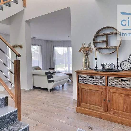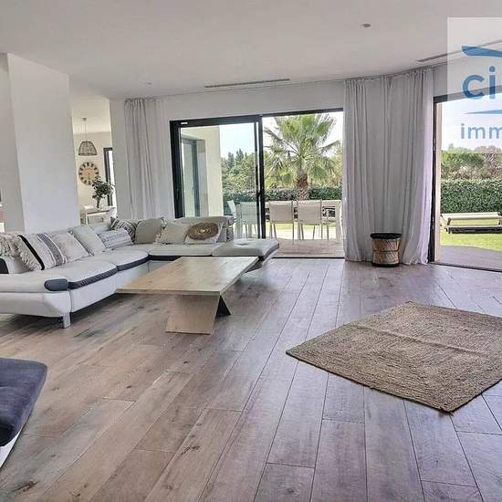 VILLA CONTEMPORAINE MEUBLEE GOLF DE BAILLARGUES - Située à 5 minutes en voiture de l'autoroute A9, de la gare, à 15 minutes de l'aéroport et de MONTPELLIER (34) dans un cadre privilégié et sécurisé, au calme en fond d'impasse aux abords du Golf international de Massane. VILLA 8 PIECES meublée moderne et lumineuse, construction 2017, de 301,36 m² sur une parcelle de terrain de 1038 m² avec PISCINE. Cette VILLA comprend au rez-de-chaussée : un bel espace de vie de 112.90 m² composé d'un salon-séjour, d'une cuisine ouverte entièrement équipée; ...