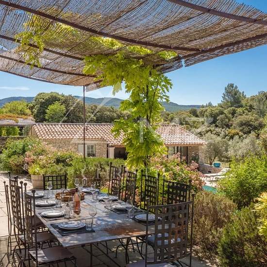 Secrètement niché à quelques minutes à peine du village médiéval perché de Bonnieux, accessible par un long chemin privé, se cache ce Mas élégant et authentique avec une vue panoramique spectaculaire sur la campagne du Luberon. Plus de quatre hectares de garrigue et de bois forment une immense aire de jeu et de détente autour des pins, cyprès, oliviers, chênes verts, cerisiers, mais également des essences méditerranéennes telles la lavande, le romarin ou les buis… De spectaculaires terrasses en pierres de pays encadrent la maison, laissant l...