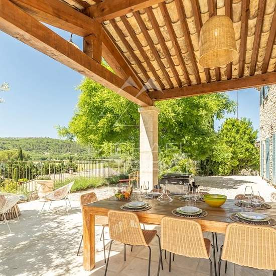 A quelques minutes du village de Gordes, dans un hameau calme et typiquement provençal, se niche cette belle maison en pierre récemment rénovée et alliant à merveille authenticité et confort. A l'intérieur, des espaces de vie lumineux en rez-de-chaussée et l'espace nuit au 1er étage avec 4 chambres et 2 salles de bain/douche. Une 5e chambre dans un studio indépendant en rez-de-chaussée. Toutes les chambres sont climatisées pour un confort optimal en toute saison. A l'extérieur, une belle terrasse couverte avec plancha pour vos repas, une pis...