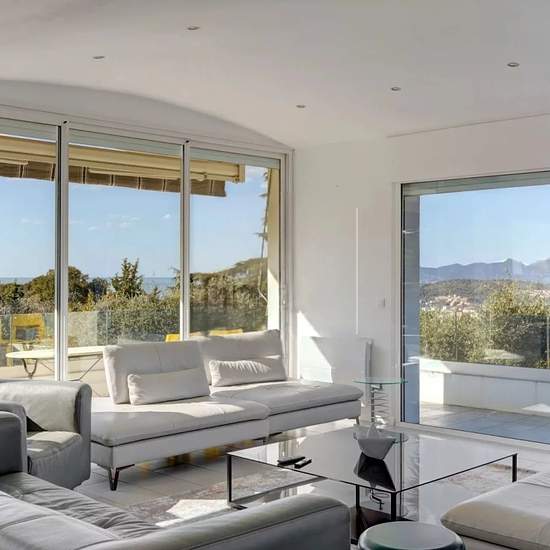 LOCATION SAISONNIERE OU A L'ANNEE - Nichée dans un hameau paisible, en impasse et baignée de soleil, cette villa de 260 m2 sur deux niveaux, rénovée en 2023 offre un cadre de vie exceptionnel sur un terrain plat de plus de 1 060 m², avec en supplément environ 40 m² de terrasses et balcons. L'accès principal se fait par une passerelle en verre suspendue, menant à l'étage supérieur où vous découvrirez une spacieuse pièce de vie baignée de lumière, comprenant une salle à manger, une cuisine ouverte équipée, et un vaste salon prolongé par une te...