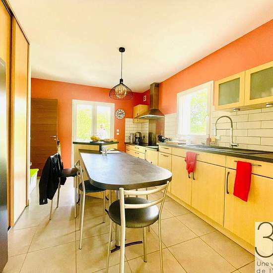 Furnished T6 house with T2 outbuilding and pool — PIBRAC — Ideally located — Family house of approximately 156 m² with basement, on a landscaped plot of 1,236 m², with a T2 outbuilding of about 42 m² and a pool. Available from 16/07. This house is quiet and close to amenities. On the ground floor: an entrance with storage closet, an open equipped kitchen of 16 m² (induction hob, extractor hood, oven, fridge, microwave…), a living/dining room of about 43 m² with a central fireplace with closed firebox, an office area and separate toilets. On ...