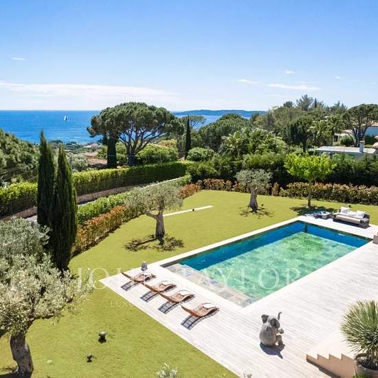 Dans un domaine sécurisé et à 10 minutes à pied des plages de Sainte-Maxime, cette maison familiale offre une vue mer sur le Golfe de Saint-Tropez et sur les collines de Grimaud. Cette maison moderne s'ouvre sur un grand espace salon, salle à manger et cuisine équipée (deux lave-vaisselle, deux réfrigérateurs, un four, un four à micro-ondes, des plaques à induction, un congélateur et tous les ustensiles de cuisine). Doté de grandes baies vitrées qui s'ouvrent complètement, le salon offre une vue époustouflante sur le jardin et sur la Méditer...