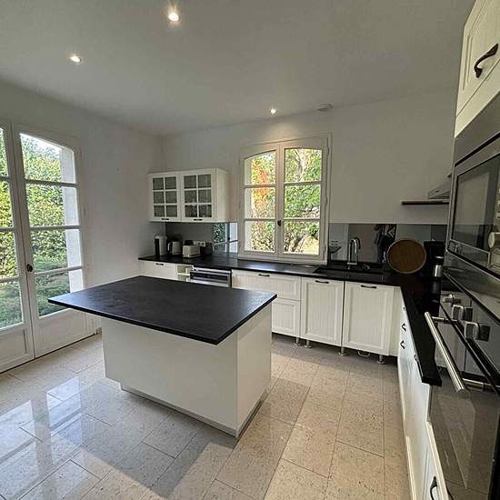VERN SUR SEICHE - maison de type 8 MEUBLÉ et comprenant : Au sous-sol : garage, atelier, cave et salle de jeux Au rez-de-chaussée : hall d'entrée, dégagement, WC, salle de bains, deux chambres, salon séjour avec cheminée ouvrant sur terrasse orienté Sud avec piscine, cuisine aménagée et équipée A l'étage : palier mezzanine, quatre chambres, dégagement, une salle de bain, une salle d'eau, WC, grenier. Maison avec très grand jardin avec piscine. Libre de suite Loyer : 3300 euros + charges 200,00 euros (femme de ménage, entretien du jardin, ent...