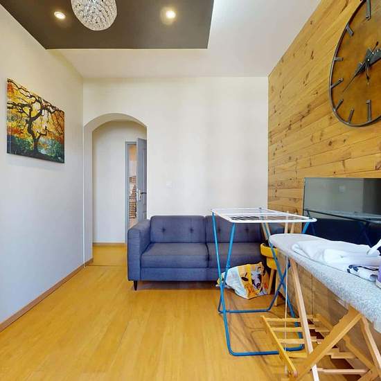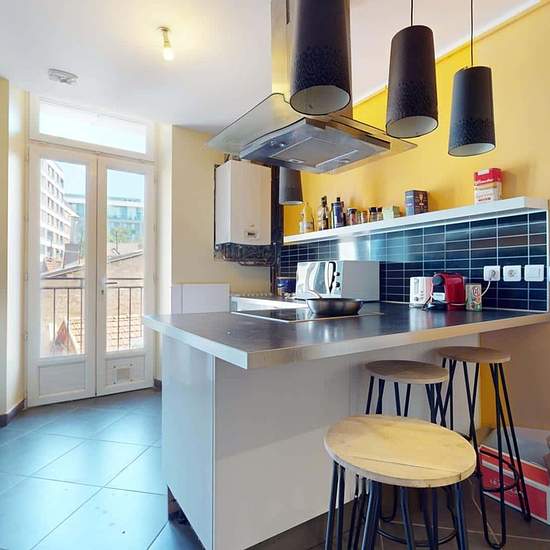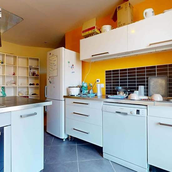 Oqoro vous présente cette colocation 5 chambres de 102 m² située au 1 rue du Môle à Annemasse. LA CHAMBRE Cette chambre n'a pas pu être photographiée au cours de la visite virtuelle, mais elle est similaire aux autres et dispose d'un lit, d'un bureau et de rangements LES ESPACES COMMUNS L'appartement s'ouvre sur une entrée avec rangements desservant un lumineux séjour. Celui-ci dispose d'un canapé, d'un meuble TV avec TV, de deux fauteuils et d'une table d'appoint. La cuisine est équipée d'un four, de plaques de cuisson, d'une hotte, d'un ...