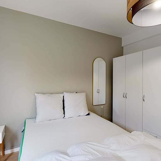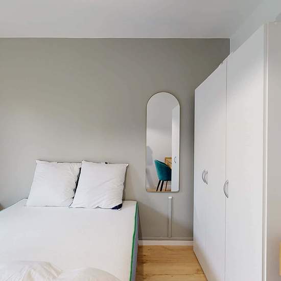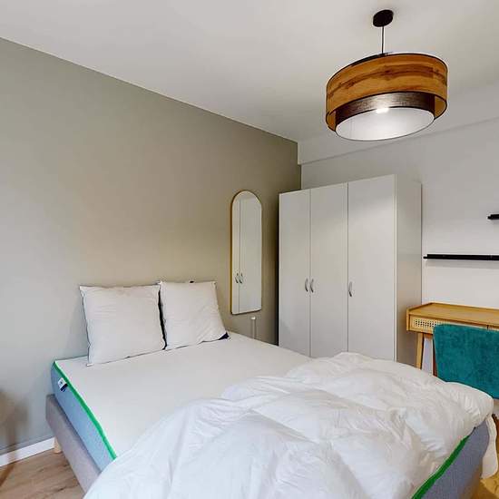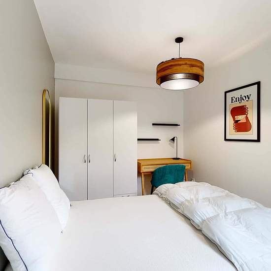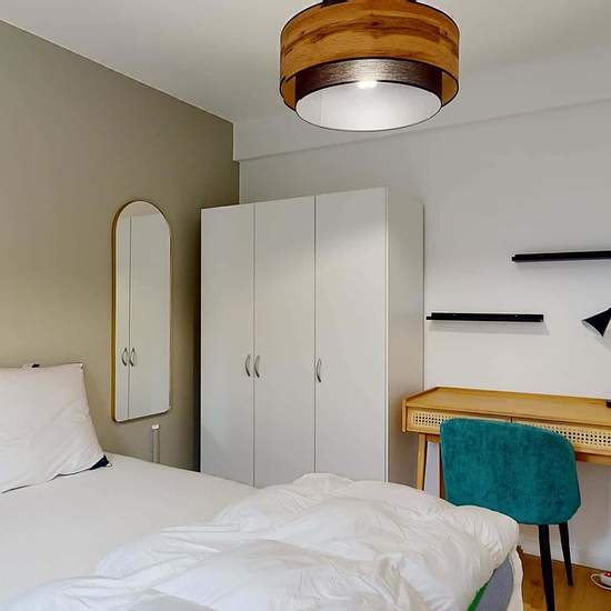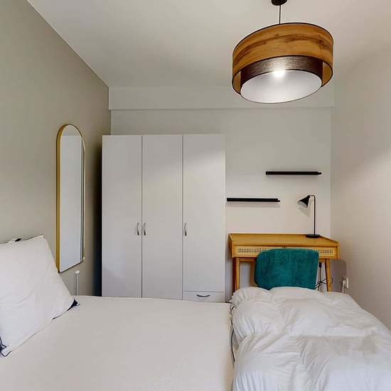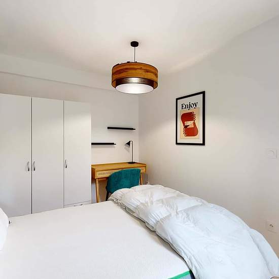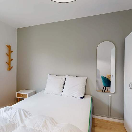 This spacious and comfortable room has been designed for you, dear roomie! Practical and functional, the room is equipped with high-quality bedding (140x200 cm), a beautiful wardrobe, a night table and a proper office space for your exams or your home office days! All of this in a cheerful and warm atmosphere. In addition, you have access to a shared bathroom, a shared terrace and a shared balcony. Beautiful flatshare in Bobigny! Discover Bobigny Drouet, our cozy and newly renovated contemporary-style apartment. Close to local shops and ...