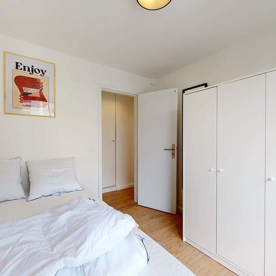 This spacious and comfortable room has been designed for you dear roomie! Practical and functional, the room is equipped with high quality bedding (140x200cm), numerous storage spaces (bed drawers, closet, shelves and night table) and a true office space for your exams or your home office days! All of this in a cheerful and warm atmosphere. In addition, you have access to a shared bathroom. Discover Bois Colombes Argenteuil, our cosy and freshly renovated contemporary-style apartment. Close to local shops and restaurants, it is easily access...