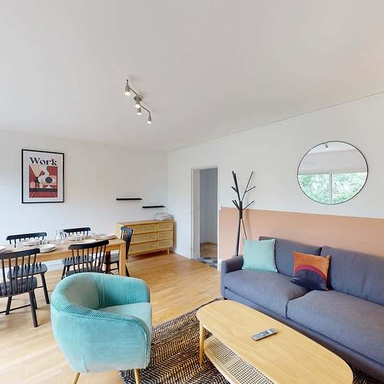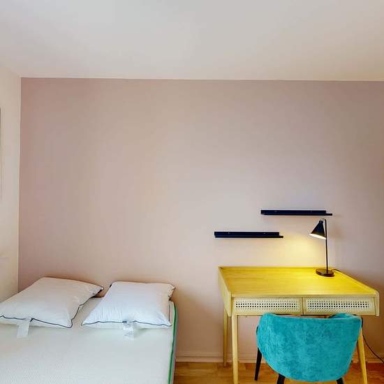 This spacious and comfortable room has been designed for you dear roomie! Practical and functional, the room is equipped with high quality bedding (140x200cm), numerous storage spaces (bed drawers, closet, shelves and night table) and a true office space for your exams or your home office days! All of this in a cheerful and warm atmosphere. In addition, you have access to a shared bathroom. Discover Bordeaux Leybardie, our cosy and freshly renovated contemporary-style apartment. Close to local shops and restaurants, it is easily accessible...