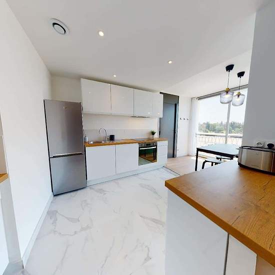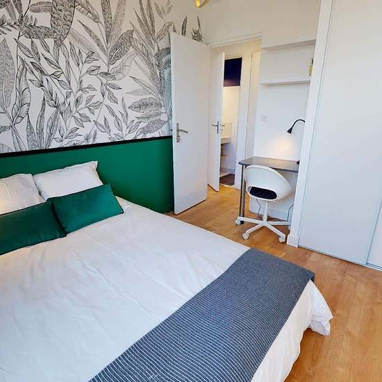 Nous vous présentons cette colocation de 4 chambres de 75 m² en location au 30 Rue Edouard Branly (Bron, 69500). LA CHAMBRE La chambre est équipée d'un bureau, d'un canapé, d'un lit, d'une penderie et d'un placard. LES ESPACES COMMUNS Cet appartement de 5 pièces comporte trois autres chambres, une cuisine et une salle de bains. L'appartement est équipé d'un chauffage collectif. Il est situé au 4e étage d'un immeuble avec ascenseur. LES EXTÉRIEURS Le bâtiment a un gardien. LE QUARTIER Quatre crèches est implantées à moins de 10 minutes à pied...