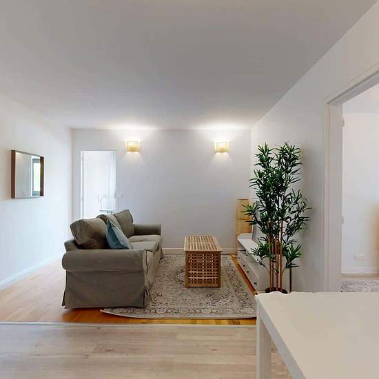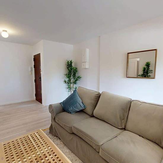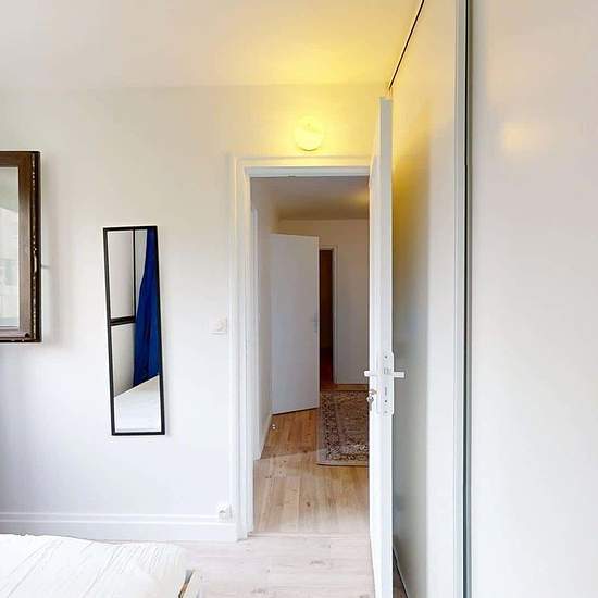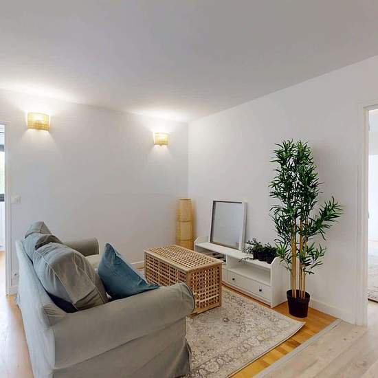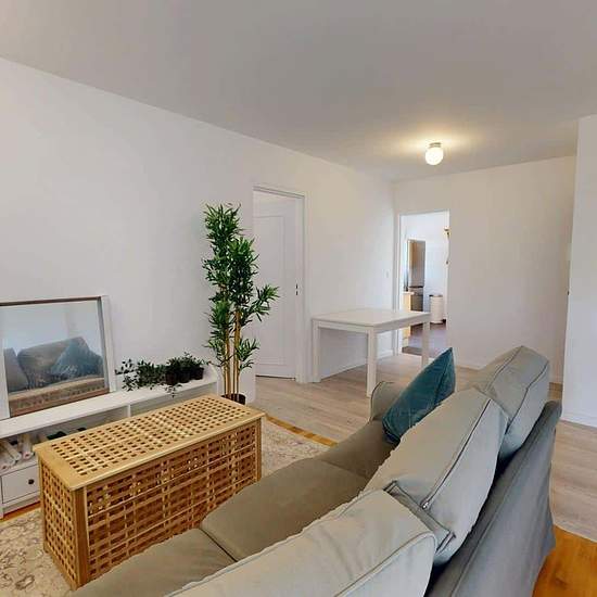 LES ESPACES COMMUNS La pièce de vie est meublée avec un canapé, une table basse, une table à manger et un meuble de rangement. La cuisine séparée est équipée d'un four, de plaques de cuisson, d'une hotte, d'un réfrigérateur avec compartiment congélateur, d'un lave-vaisselle, d'une machine à laver, ainsi que de nombreux rangements et ustensiles de cuisine. L'appartement possède deux salles d'eau et des WC séparés. La première salle d'eau comporte une douche, un meuble vasque avec miroir, ainsi que des rangements. La seconde salle d'eau compor...