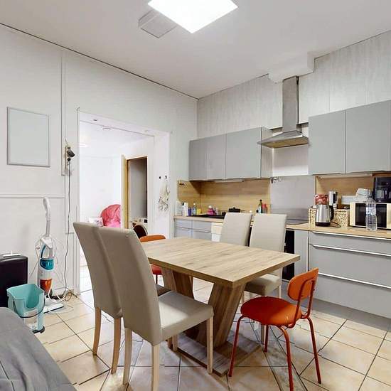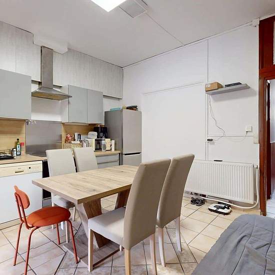 Oqoro vous propose cette agréable colocation de 5 chambres dans une maison de 94 m², située au 39 Rue Godefroy Cavaignac, à Lille. La maison s’étend sur trois étages. Au rez-de-chaussée, vous trouverez une cuisine entièrement équipée pour votre confort : réfrigérateur, plaques de cuisson, micro-ondes, four, lave-vaisselle, hotte, bouilloire, friteuse et appareil à raclette. Une table à manger et un canapé complètent l’espace. Un lave-linge séchant est également à votre disposition. Un séjour avec canapé et plusieurs étagères permet de range...