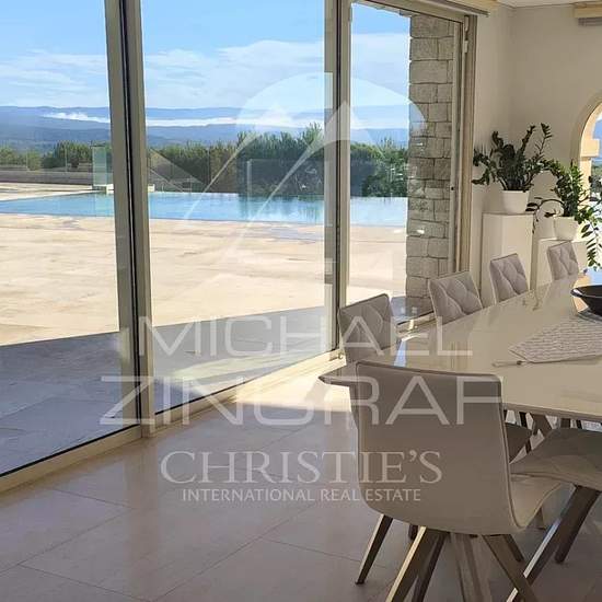 Perchée sur une colline dans un quartier résidentiel standing, cette magnifique propriété en pierre de taille profite d'une vue à couper le souffle sur le Luberon, le Mont Ventoux et les Alpilles et réunit tout les atouts pour vous faire passer un séjour inoubliable. A l'extérieur, une terrasse de plus de 400m2 avec immense piscine miroir à débordement, un jacuzzi, un terrain de pétanque. A l'intérieur, des pièces de vie et 5 chambres spacieuses et lumineuses, dont 3 en suite. Le tout climatisé et avec un accès direct à l'extérieur et à la v...