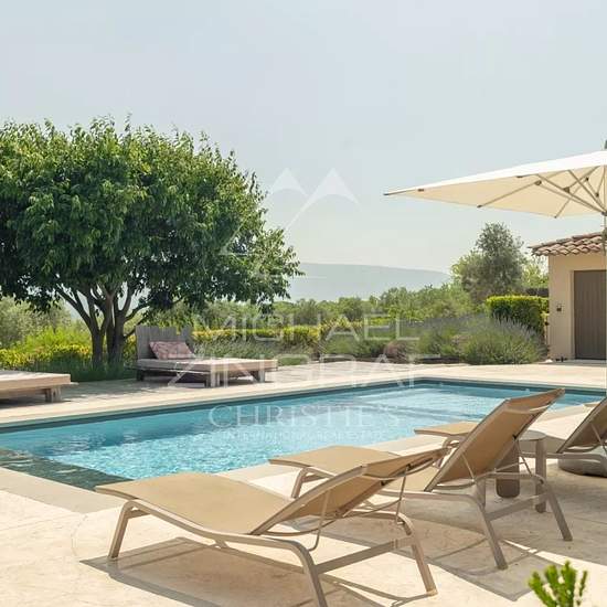 À quelques minutes en voiture du centre du village de Gordes, dans un quartier calme et recherché, se niche cette incroyable demeure aux prestations raffinées. Une vue panoramique et sans vis-à-vis sur le Luberon s'offre pleinement à vous. Un jardin arboré et délicatement paysagé propose une belle terrasse, un espace engazonné, une belle piscine avec son pool-house aménagé et parfaitement équipé ainsi qu'une zone de parking ombragée. L'intérieur, entièrement climatisé, vous séduira par les éléments de décoration et la lumière qui baigne les ...