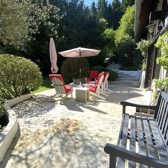 Sur un très beau parc arboré de 3 hectares, au calme sans vis à vis et coup de coeur, propriété d'environ 280 m2, composée au rez de chaussée d'une entrée sur une cuisine aménagée et équipée en accès terrasse, distribuant d'un côté une buanderie avec dressing et wc, et de l'autre côté, une grande pièce de vie avec un séjour salle à manger en accès terrasse, une salle de douche avec wc et un salon-bibliothèque avec cheminée. A l'étage: un palier distribuant d'un côté une suite parentale (lit 180) avec salle de douche et wc, et de l'autre côté...