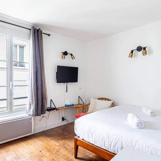 This studio apartment in the 2nd arrondissement is perfect for couples looking for a pleasant stay in Paris. The property is close to various attractions (e.g. Louvre Museum, Sainte-Chapelle), good restaurants and shops, and the Strasbourg Saint-Denis station is just 2 minutes away, so guests can easily travel and explore the city! The space Welcome to my studio! Situated on the 2nd floor without a lift, this lovely and tastefully decorated 20m² studio has everything you need for a comfortable stay! This studio is designed with open livin...