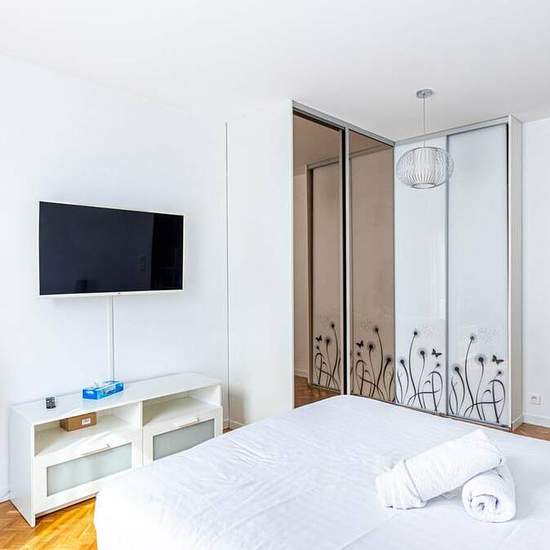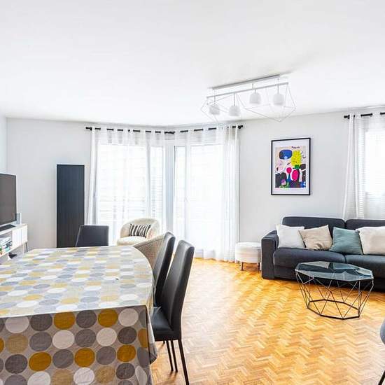 Welcome to my 114 m² apartment on the 5th floor in the 20th Arrondissement of Paris. It can comfortably accommodate five people with its four bedrooms, bright living room, fully equipped kitchen, and two bathrooms. Ideally located 3 minutes from the metro, you can easily access Paris' attractions! Please note that this apartment is available for mobility leases only. The space Welcome to my apartment! Situated on the 5th floor with a lift, this modern and tastefully decorated 114m² apartment is close to various top attractions in Paris! ...