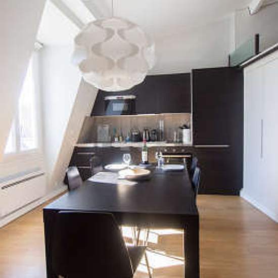 This comfortable 38 m² apartment is located on Rue Du Perche, in a animated section of Paris 3th district near the Picasso Museum and the National Archives. This large furnished studio rental with mezzanine can accommodate up to 4 people. This very bright and very peaceful apartment is located on the 7th floor (no lift) and has an open view on the Paris rooftops. It is also equiped with everything you need to make you feel right at home including high-speed Internet (included), Vacuum cleaner, Iron, table linens, dish towels, etc. The apartm...