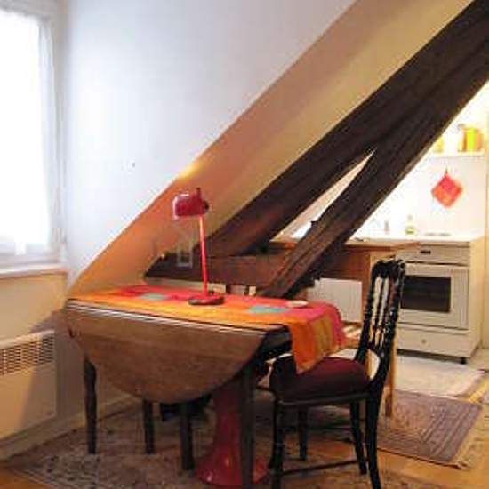 This furnished 22 m² apartment is located on Rue De Bourbon Le Chateau, in a prestigious section of Paris 6th district. This charming furnished studio rental can accommodate up to 1 person. This bright and very peaceful apartment is located on the 6 floor (no lift). It offers a view of Les toits. It is also equipt with all you need just like at home including Vacuum cleaner, Iron, Washing machine, Linen, etc. The apartment is accessible by Paris public transportation (Mabillon/M 10, Saint-Germain des Prés/M 4, Odéon/M 4, M 10), and nearby yo...