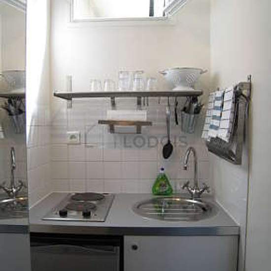 This furnished 17 m² apartment is located on Avenue George V, in a prestigious section of Paris's 8th arrondissement. This charming furnished studio can accommodate up to two people. The bright, peaceful apartment is on the 7th floor (no elevator). It is equipped with everything you need to feel like a Parisian, including cable TV, internet, a washing machine, bed linen, table linens, dish towels, and an armored door. The apartment is accessible by Paris public transportation (Alma–Marceau, Metro line 9; Franklin D. Roosevelt, Metro lines 1 ...