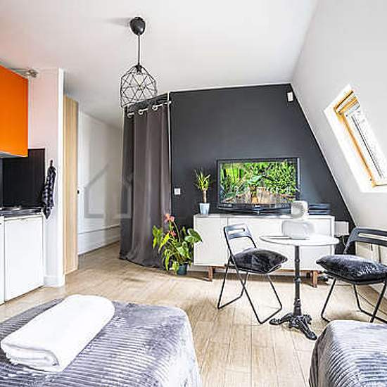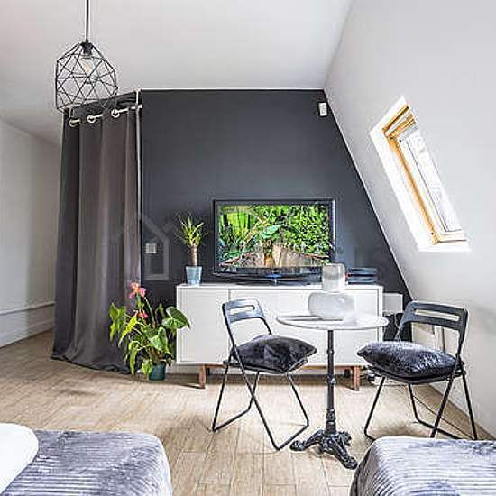 This furnished 23 m² apartment is located on Avenue Charles De Gaulle, in a residential section of Neuilly-Sur-Seine located in Hauts-de-Seine, 92. This charming furnished studio rental can accommodate up to 2 people. This bright and very peaceful apartment is located on the 6th floor - FR standard (elevator available). It offers a clear view of Eiffel tower. It is also equipped with all you need to make you feel right at home including Internet included, Vacuum cleaner, Iron, table linens, dish towels, armored door, Cable, WIFI Only, Linen,...