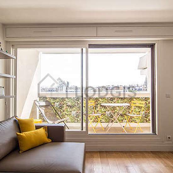 Landlord's comments: "Large 36sqm fully furnished studio flat, renovated in 2015, that can comfortably accommodate one or two people. Equipped with high-end design furniture and appliances. Incredibly peaceful, flooded with light throughout the day thanks to its double exposure: a 6 sqm terrace facing South opening on a beautiful garden accessible from the living room, and a large window facing West on a flowery courtyard. Numerous storage spaces, large bathroom with walk-in shower, separate toilet. All amenities included: high speed Interne...