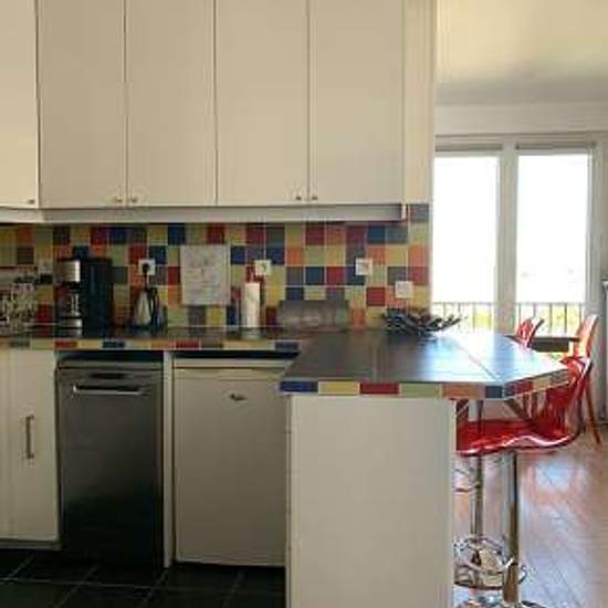 This comfortable 35 m² apartment is located on Rue René Coty, in a animated section of Paris 14th district. This large furnished studio rental can accommodate up to 2 people. This very bright and very peaceful apartment is located on the 12 floor (elevator available). It offers a clear view. It is also equiped with all you need to feel like a parisian including Vacuum cleaner, Cable, Internet included, Washing machine, Linen, table linens, dish towels, etc. The apartment is accessible by Paris public transportation (Mouton-Duvernet/M 4, Alés...