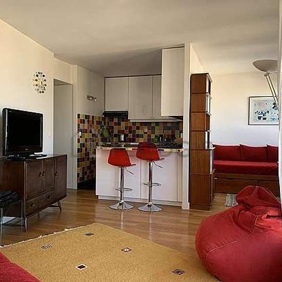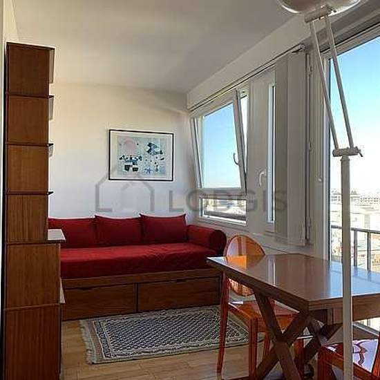 This comfortable 35 m² apartment is located on Rue René Coty, in a animated section of Paris 14th district. This large furnished studio rental can accommodate up to 2 people. This very bright and very peaceful apartment is located on the 12 floor (elevator available). It offers a clear view. It is also equiped with all you need to feel like a parisian including Vacuum cleaner, Cable, Internet included, Washing machine, Linen, table linens, dish towels, etc. The apartment is accessible by Paris public transportation (Mouton-Duvernet/M 4, Alés...