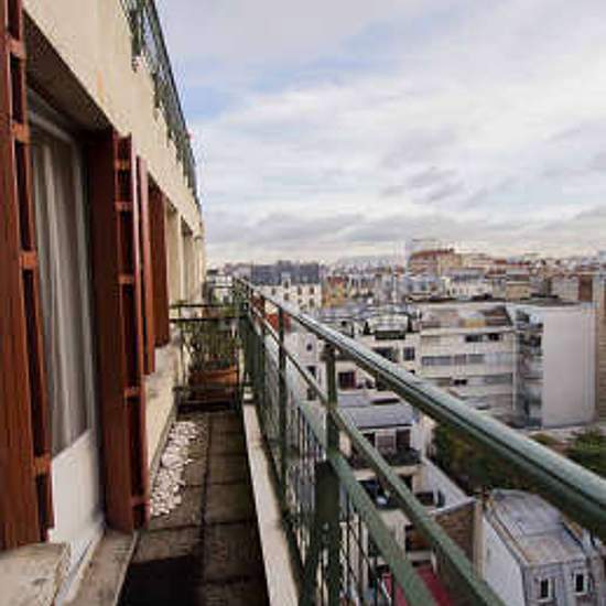 Landlord's comment : Sunny and bright studio apartment facing east, south, west, with a private large terrace, on the top floor of a building near Montparnasse. Attractive building very close to the Metro station, bus stop and Vélib station (Paris bicycles), shopping, supermarket, etc. Local market twice a week.