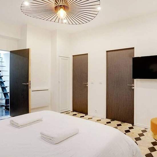 The Montmorency flat offers you a charming 75m² space in the heart of the Marais, in a historic building. Ideally located, it is close to public transport, shops and numerous restaurants. Comfortable and bright, it's the ideal pied-à-terre for enjoying Paris. This functional and well-appointed flat includes: A fully-equipped open-plan kitchen: fridge, hob, coffee machine, toaster, kettle, oven, washing machine, dishwasher, etc. A comfortable lounge with sofa bed and TV A modern bathroom with shower and WC Optimised storage space TV and bro...