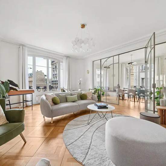 Located a stone’s throw from Place du Trocadéro, Engel & Völkers offers a furnished apartment for rent of 270 m², 8 rooms on the 1st floor with elevator in a high-end Art Nouveau building. This apartment comprises an entrance, a vestibule, a living room, a dining room, a fitted separate kitchen, 6 elegant bedrooms each with its own bathroom, a dressing room, a guest shower room and separate toilets. The apartment is fully renovated; you will be charmed by its generous volumes, the charm of its moldings, its fireplaces and its herringbone par...