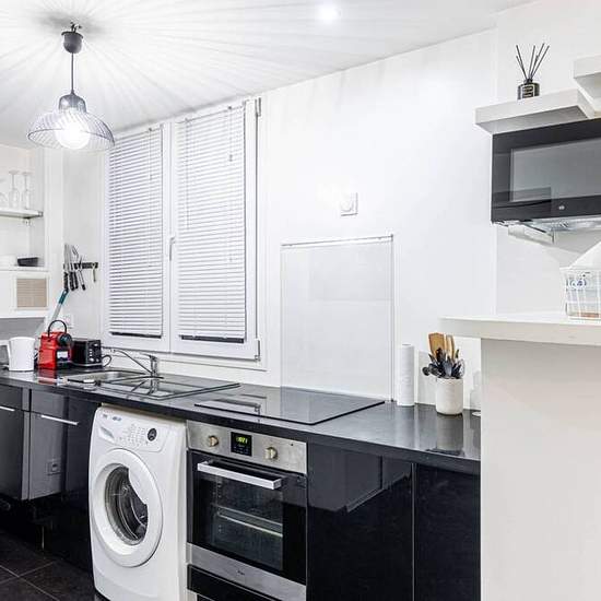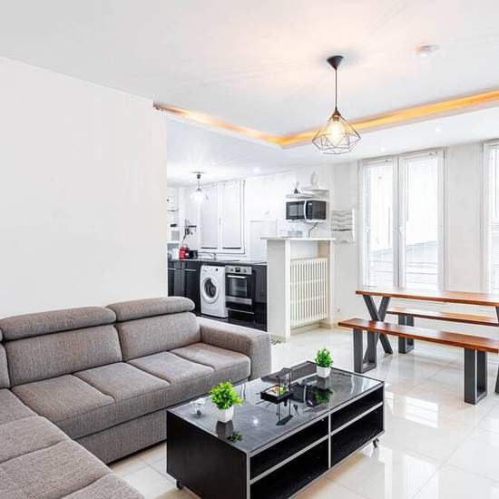 This one-bedroom apartment in the 18th arrondissement is perfect for couples looking to stay in the city. It has everything you need for a pleasant stay. The property is close to various attractions (e.g., Sacré-Cœur), good restaurants, and shops. The Château Rouge station is just 5 minutes away, so guests can easily travel and explore the city! The space Welcome to my apartment! Situated on the 1st floor without a lift, this modern and tastefully decorated 43 m² apartment is close to various top attractions in Paris, such as Sacré-Cœur! ...