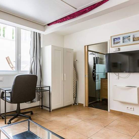 This studio apartment on Rue de Villeneuve, Pont de Bezons, is 20 m² and has access to a gorgeous shared terrace. The fully furnished property comes with all the essentials for a comfortable stay, including a double bed, television, and a fully equipped kitchen. The apartment is located in a tranquil riverside area, away from the hustle and bustle of the city. The tram stops 5 minutes away, and can take you directly to la Défense. You will also find shops, restaurants, banks, a post office and other amenities within walking distance. Detai...