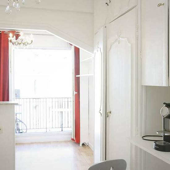 Charming Parisian studio apartment for rent in Batignolles-Monceau, Paris’s 17th arrondissement. The 25 m pet-friendly studio features a fully equipped living area with a kitchen corner and a small balcony facing the courtyard. Along with being nearby plenty of public transportation services, you will also live just a 10-minute walk away from the large Bois de Boulogne park. This neighborhood is well-connected with Paris' main train stations as well as landmarks such as the Eiffel Tower Details Property type: apartment Floor: 5th Elevator...