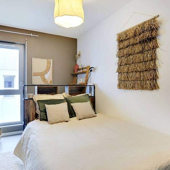 We welcome you to this spacious 104 m² apartment. Located on the 5th floor of a modern and secure building in the 19th district of Paris, it has been entirely redesigned by our team of architects. It includes 5 bedrooms with different styles, ranging from 9 to 17 m², two bathrooms, a separate toilet, and a kitchen. Its major advantage? Public transport and shops are right at the bottom of this building.