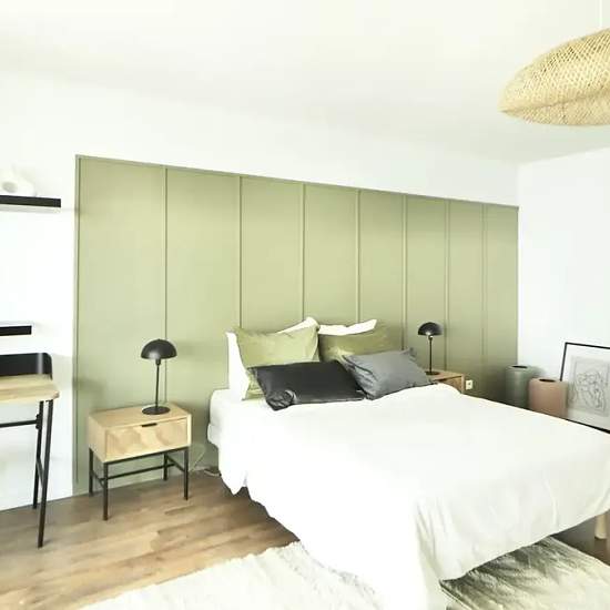 Discover this spacious and comfortable 25 m² bedroom in a 86 m² coliving apartment in Bègles, near Bordeaux. This room boasts a modern and minimalist decoration, with white walls accentuated by touches of khaki green and hints of wooden elements. Fully furnished, it includes a desk for work and study, as well as a reading corner for your relaxation moments. The ample storage space makes this room even more functional. By choosing this room, you will have your own access to the communal apartment balcony. With coliving, you get an all-inclusi...