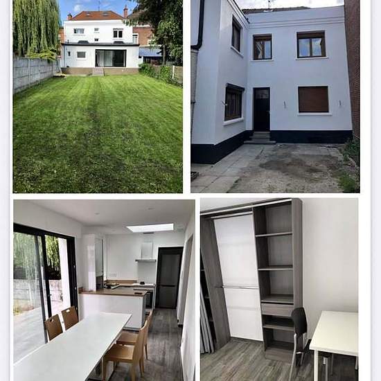Rooms available for: shared accommodation, students. In a fully renovated house on Rue Benoîte Vincent, Béthune. 5 minutes from the train station (on foot). House: 3 bedrooms. Shared areas: 2 bathrooms, 1 living room, 1 dining room, 1 equipped kitchen, 1 garden, 1 garage, 1 parking space. €380/month per room. Charges €60/month. For any information or visits, call 06/61/84/30/92.
