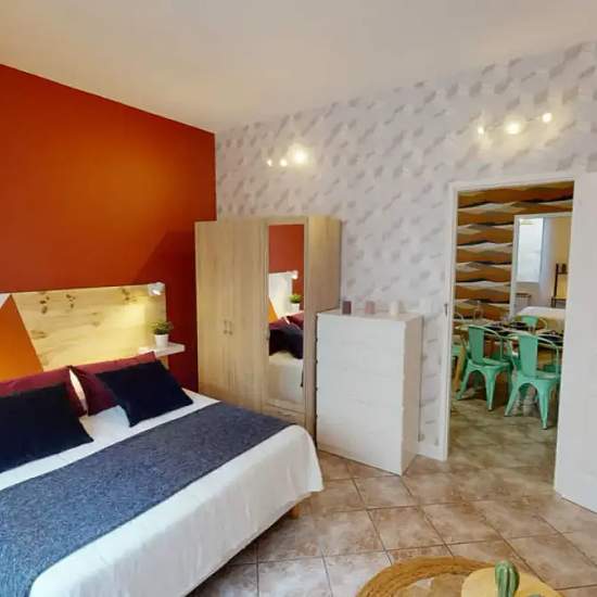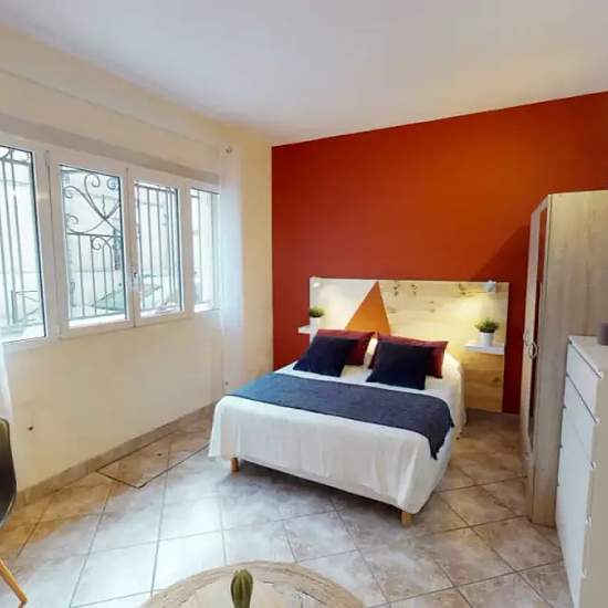 This lovely private bedroom in a fully equipped, furnished and all-inclusive flatshare in Bordeaux is a mix of comfort and design. It has got household furnishings, including a bed with pillows and duvet What is missing is your things to feel at home! The room can be locked if you need intimacy. The flatshare can be found in the Capucins - Victoire neighborhood, in the heart of Bordeaux. Plenty of shops, public transports, restaurants are accessible close by. The apartment is on floor 0 without lift. It is entirely equipped and is composed o...