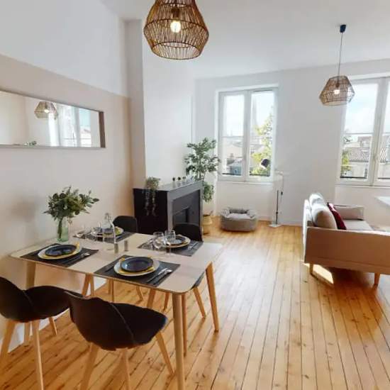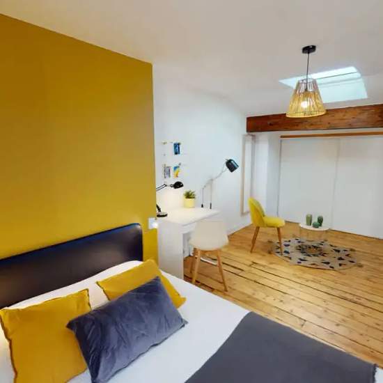 This lovely private bedroom in a fully equipped, furnished and all-inclusive flatshare in Bordeaux is a mix of comfort and design. It has got household furnishings, including a bed with pillows and duvet What is missing is your things to feel at home! The room can be locked if you need intimacy. The flatshare can be found in the Hôtel de Ville - Quinconces neighborhood, in the heart of Bordeaux. Plenty of shops, public transports, restaurants are accessible close by. The apartment is on floor 3 without lift. It is entirely equipped and is co...