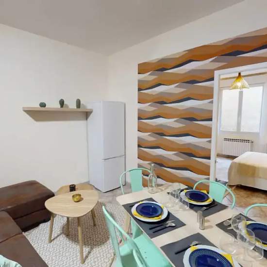 This lovely private bedroom in a fully equipped, furnished and all-inclusive flatshare in Bordeaux is a mix of comfort and design. It has got household furnishings, including a bed with pillows and duvet What is missing is your things to feel at home! The room can be locked if you need intimacy. The flatshare can be found in the Capucins - Victoire neighborhood, in the heart of Bordeaux. Plenty of shops, public transports, restaurants are accessible close by. The apartment is on floor 0 without lift. It is entirely equipped and is composed o...