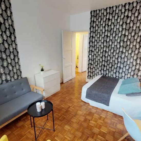 This lovely private bedroom in a fully equipped, furnished and all-inclusive flatshare in Boulogne-Billancourt is a mix of comfort and design. It has got household furnishings, including a bed with pillows and duvet What is missing is your things to feel at home! The room can be locked if you need intimacy. The flatshare can be found in the Boulogne-Billancourt neighborhood, in the heart of Boulogne-Billancourt. Plenty of shops, public transports, restaurants are accessible close by. The apartment is on floor 0 without lift. It is entirely e...