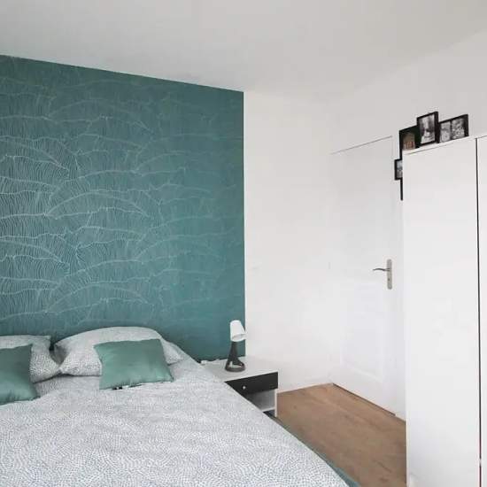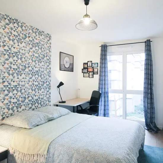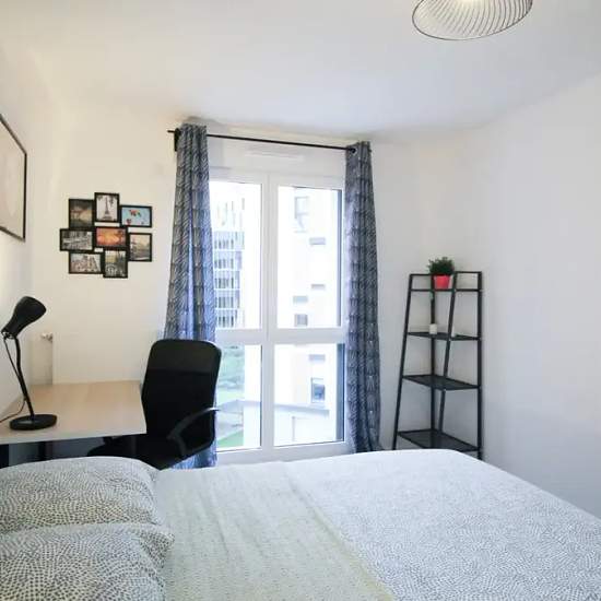 Room of 13m², fully furnished. It has a double bed (140x190) and a bedside table with lamp. A working area is included, composed of a desk with chair and lamp. The room also has storage space, a wardrobe with hanging space and a shelf. The room also has an armchair but its main feature is its access to the balcony. Located at the gates of Paris, this 90m² apartment benefits from an ideal location, close to the Parc Roger Salengro and the metro station: Saint Ouen and close to all amenities. The apartment is located on the 3rd floor of a secu...