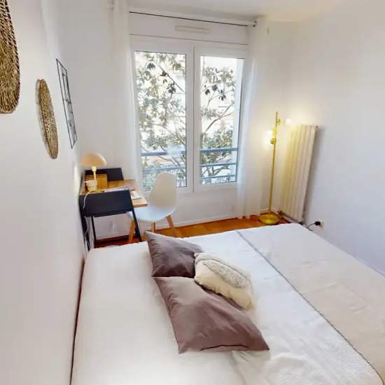 This lovely private bedroom in a fully equipped, furnished and all-inclusive flatshare in Courbevoie is a mix of comfort and design. It has got household furnishings, including a bed with pillows and duvet What is missing is your things to feel at home! The room can be locked if you need intimacy. The flatshare can be found in the Courbevoie neighborhood, in the heart of Courbevoie. Plenty of shops, public transports, restaurants are accessible close by. The apartment is on floor 2 with lift. It is entirely equipped and is composed of a larg...