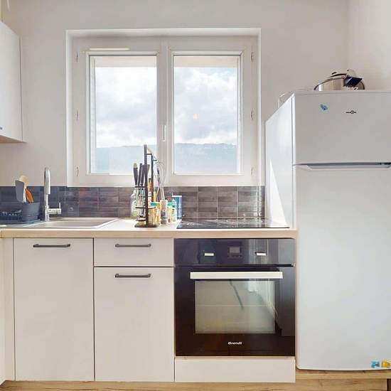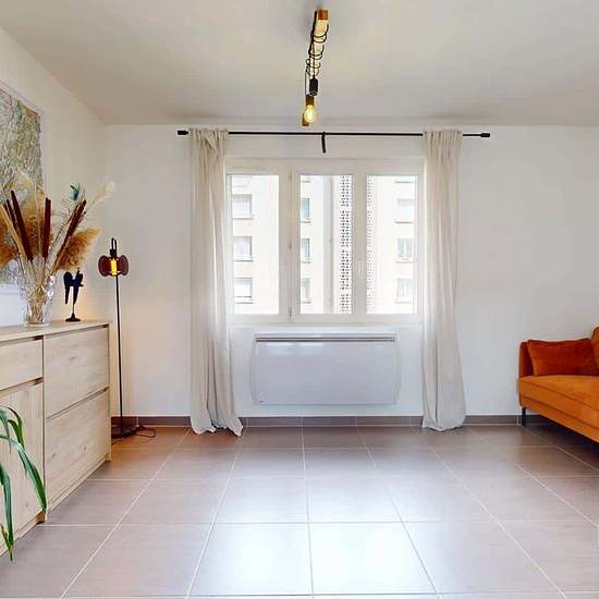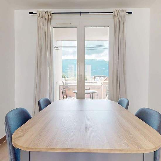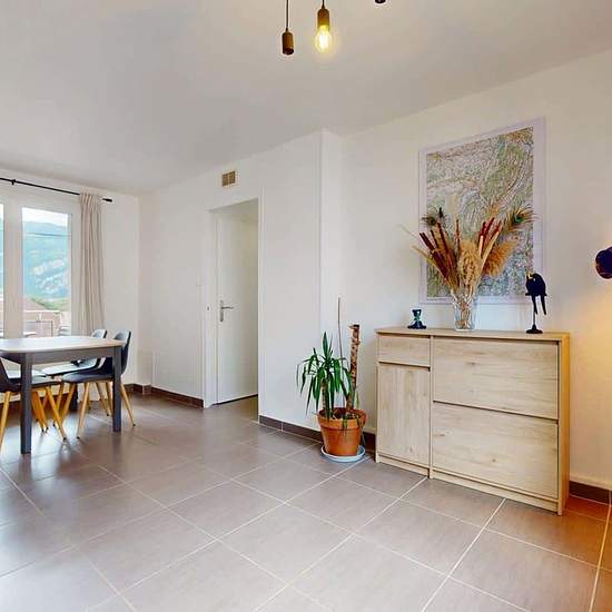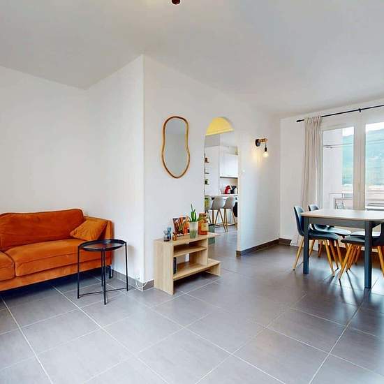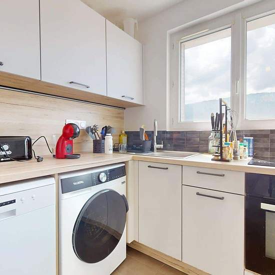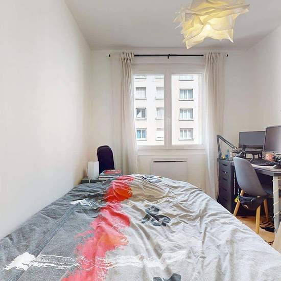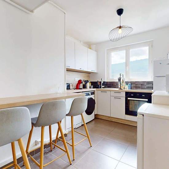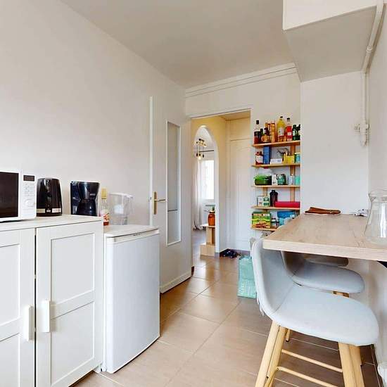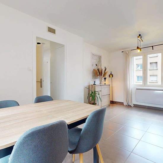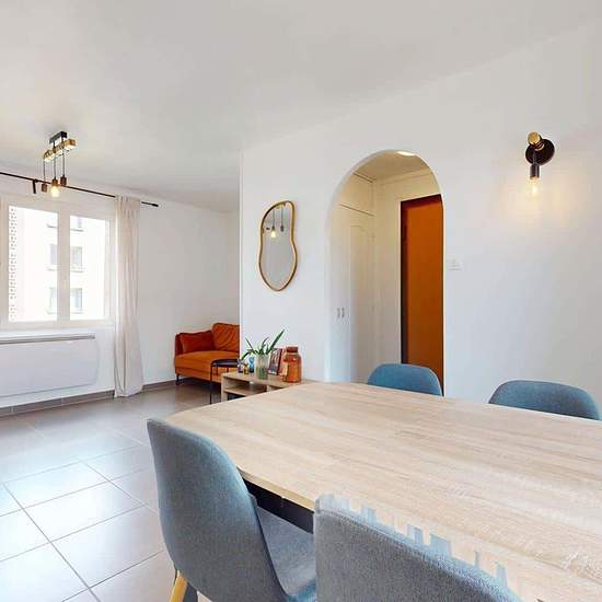 APPARTEMENT Cette colocation de trois chambres s'ouvre une pièce de vie aménagée d'un canapé, d'une table basse, d'un meuble TV ainsi que d'une table avec quatre chaises, idéal pour partager des repas entre colocataires. La cuisine est équipée d'un réfrigérateur, d'un four, de plaques de cuisson, d'un évier, d'une machine à laver, d'un lave-vaisselle, de nombreux rangements ainsi que d'un mange-debout avec trois tabourets. La salle d'eau dispose d'une grande douche, d'un meuble vasque avec un miroir ainsi que d'un sèche-serviettes. Les toil...