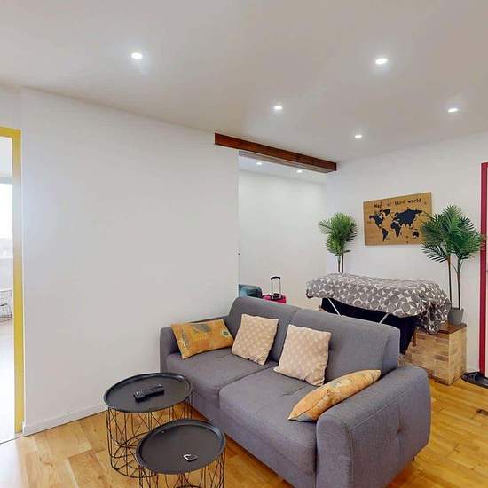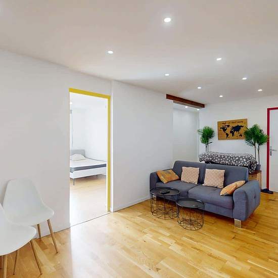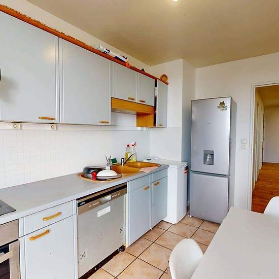 L'appartement Oqoro vous présente cette colocation spacieuse de 4 chambres dans un appartement lumineux de 83 m², situé au 7ᵉ étage d’une résidence calme avec ascenseur. Espaces communs La pièce de vie est meublée avec un canapé et une télévision, idéale pour vos moments de détente. La cuisine séparée est entièrement équipée : four, micro-ondes, plaques de cuisson, hotte, évier, réfrigérateur avec compartiment congélateur, lave-vaisselle, machine à laver, ainsi que de nombreux rangements et ustensiles. Une table à manger est disponible pour...