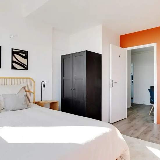 Welcome to Kremlin-Bicêtre, a town bordering south Paris! On the 4th floor of a quiet residence, you'll find this 12 m² room. Completely redesigned in white and orange tones to energize your mornings, it includes a double bed, storage spaces, and a desk. Looking for the perfect accommodation in a new city? Choose co-living. The monthly rent for your fully equipped room already covers the apartment's insurance, internet, and a provision for utilities. This room is also eligible for housing assistance according to CAF conditions. So, don't wai...