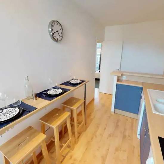 This lovely private bedroom in a fully equipped, furnished and all-inclusive flatshare in Lille is a mix of comfort and design. It has got household furnishings, including a bed with pillows and duvet What is missing is your things to feel at home! The room can be locked if you need intimacy. The flatshare can be found in the Wazemmes neighborhood, in the heart of Lille. Plenty of shops, public transports, restaurants are accessible close by. The apartment is on floor 1 without lift. It is entirely equipped and is composed of a large kitchen...
