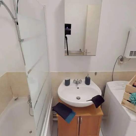 This lovely private bedroom in a fully equipped, furnished and all-inclusive flatshare in Lille is a mix of comfort and design. It has got household furnishings, including a bed with pillows and duvet What is missing is your things to feel at home! The room can be locked if you need intimacy. The flatshare can be found in the Wazemmes neighborhood, in the heart of Lille. Plenty of shops, public transports, restaurants are accessible close by. The apartment is on floor 0 without lift. It is entirely equipped and is composed of a large kitchen...