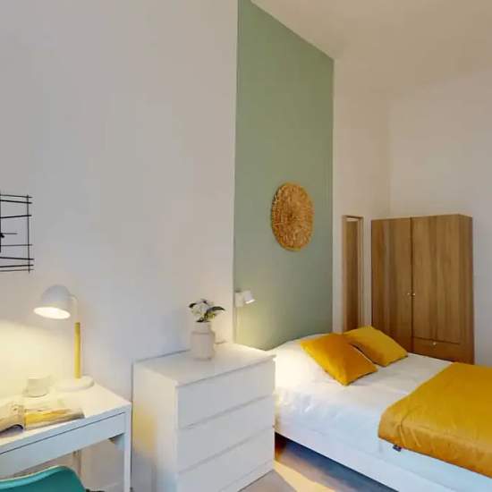 This lovely private bedroom in a fully equipped, furnished and all-inclusive flatshare in Lyon is a mix of comfort and design. It has got household furnishings, including a bed with pillows and duvet What is missing is your things to feel at home! The room can be locked if you need intimacy. The flatshare can be found in the Cordeliers neighborhood, in the heart of Lyon. Plenty of shops, public transports, restaurants are accessible close by. The apartment is on floor 2 with lift. It is entirely equipped and is composed of a large kitchen wi...