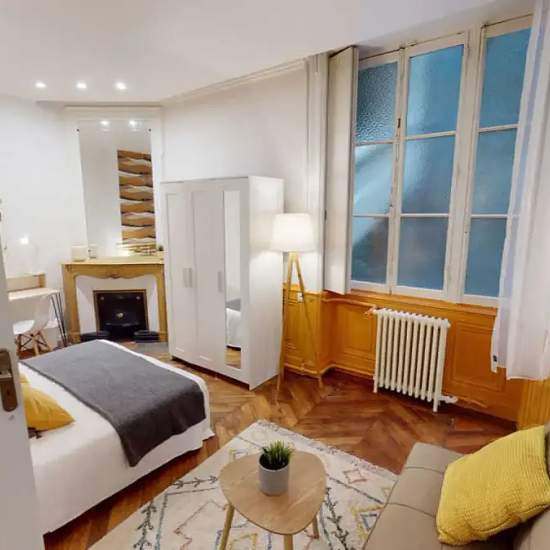 This lovely private bedroom in a fully equipped, furnished and all-inclusive flatshare in Lyon is a mix of comfort and design. It has got household furnishings, including a bed with pillows and duvet What is missing is your things to feel at home! The room can be locked if you need intimacy. The flatshare can be found in the Hôtel de Ville - Presqu'île neighborhood, in the heart of Lyon. Plenty of shops, public transports, restaurants are accessible close by. The apartment is on floor 3 without lift. It is entirely equipped and is composed o...